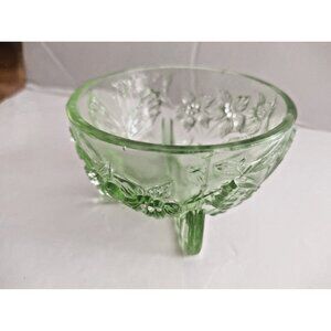 This three footed Sowerby bowl is in wonderful condition, however we do believe the lid is a replacement...as the original lid would have been glass as well...