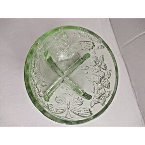 Sowerby Art Deco Green Glass Butterfly Trinket Bowl 1930's pattern 2552