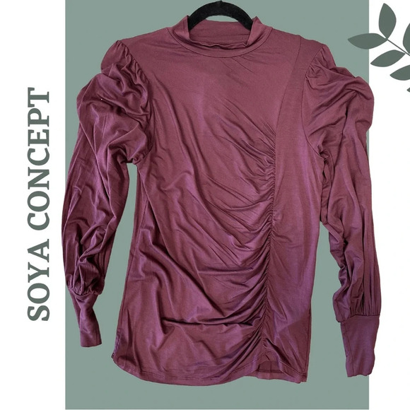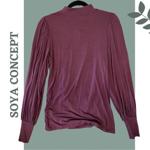 Soya Concept Light Knit Burgundy Long Sleeve Tip Side Gather Detail Small