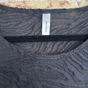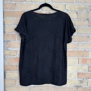 Excellent condition. Elevate your wardrobe with this chic black textured top. Perfect for any occasion, this versatile piece adds a touch of elegance to your outfit.