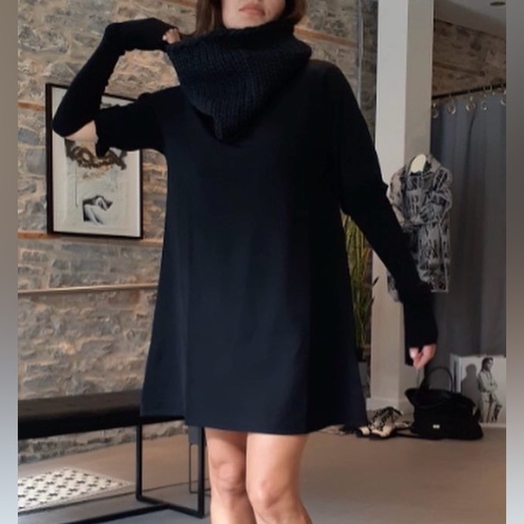 Same dress shown in black in first two images to show how these sleeves look when on. The A-line shape is universally flattering and the style is rather minimalist but the arms are the detail that make this dress! Elbows are intended to poke out. Very cute style. Dress is in excellent condition as worn once or twice. Pair with a collar or scarf and some boots and you’re good to go!