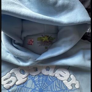 Stay stylish and comfortable with this light blue hoodie featuring a unique spider web design. Perfect for casual outings.