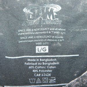 This Hard to Find Mens Large Space Jam A New Legacy Looney Tunes Black Acid Wash T Shirt is in Great Clean condition. Shirt is 60% Cotton - 40% Polyester - Machine washable. Features Bugs Bunny, Daffy Duck, Martian the Martian, Wile E Coyote and Sylvester the Cat.