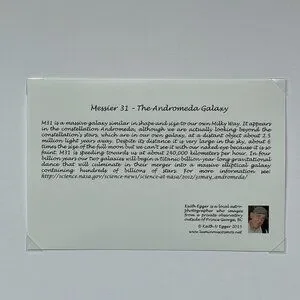 ๐ Glossy photo of the Andromeda Galaxy (also known as Messier 31 or M31), presented in a black mat (without frame or protective glass).