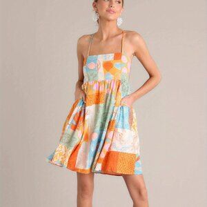 Spaghetti Strap Seashell Pattern Tie Back Summer Mini Dress