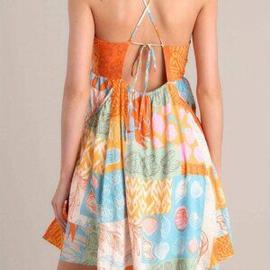 Spaghetti Strap Seashell Pattern Tie Back Summer Mini Dress
