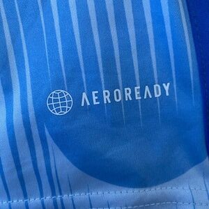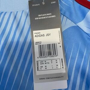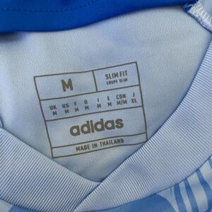 Stay true to your love for Spain's national soccer team with this officially licensed adidas Spain Away Kit in men's size medium. Made for soccer enthusiasts, this blue jersey features the iconic Spain team crest, making it the perfect addition to your fan apparel collection. Whether you're cheering on your favorite players or hitting the field yourself, this jersey is designed for comfort and style, ensuring you stay connected to your team's spirit with every wear. Get ready to show your support in true Spanish style. (With tags)