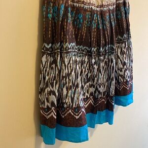 Spanner Cotton Pleated Knee Length Skirt Boho A-line Boho Hippie Festival Blue