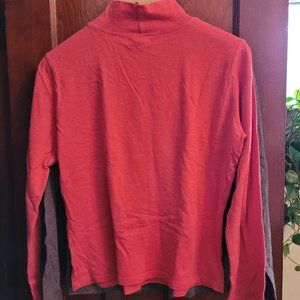 Two mock necks, brown and salmon.