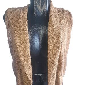 Spanner Tan Knit Sleeveless Open Cardigan M