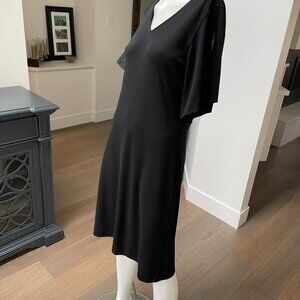 Spanner VNeck Elbow Length Rayon Poly Blend Classic Midi LBDress Black Sz M