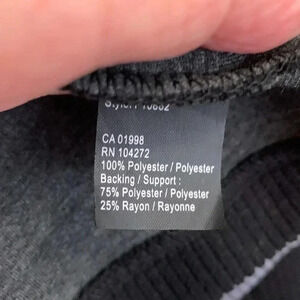 It’s in excellent used condition. It looks like corduroy but it’s actually 100% polyester. It has a bit of stretch. It has two shallow front pockets and an easy grab zipper.