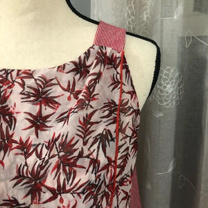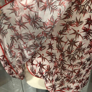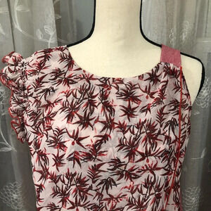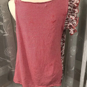 Cute side ruffle sleeve style, wrap front top in red and white floral and striped pattern. Like new.