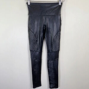 WHAT: Designed with The Slim is Built In™ contoured power waistband and hidden shaping, these leggings feature a premium faux leather finish with moto details. Leggings have a fitted slip-on silhouette, hit at your natural waist, and are center-seam free