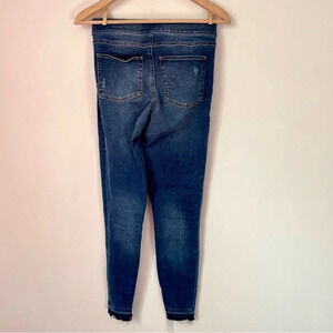 Spanx Distressed Ankle Skinny Jeans Medium Wash. Designed with comfortable stretch denim, high-rise coverage and hidden tummy shaping, this Distressed Skinny Jean is a “jean come true.” It’s the perfect match for your tees, sweaters, tanks and everything in between. Pull on design, mock front pockets and functional back pockets. Size small. Excellent condition.