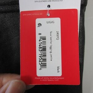 Keywords: SPANX leggings, faux leather leggings, black leggings, petite leggings, high waisted leggings, tummy control leggings, size L/G, women's leggings, designer leggings, fashion leggings