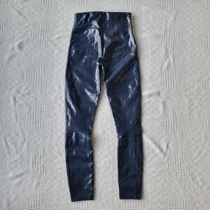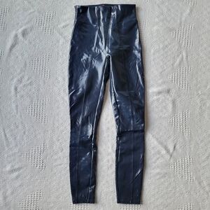 Spanx - Faux Patent Leather High Waisted Shapewear Causal Leggings- Navy