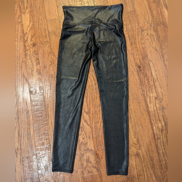 Spanx NWOT faux ‘leather’ shiny stretch compression shape wear leggings, XL fit M/L