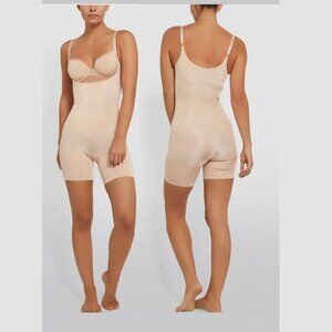 Spanx Shapewear Bodysuit Seamless Nude OnCore Open Bust Mid-Thigh Bodysu…
