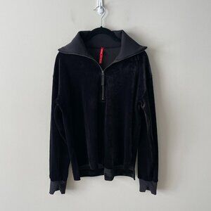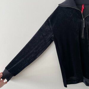 Spanx Velvet Fabric Half Zip Long Sleeve Casual Pullover Sweatshirt Black Medium