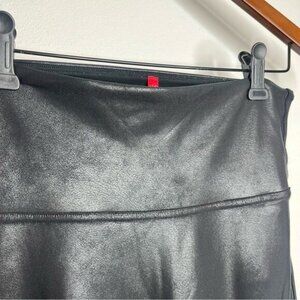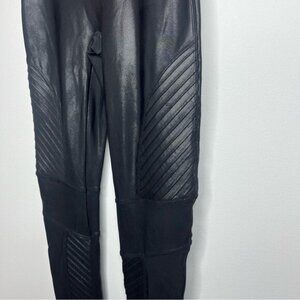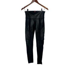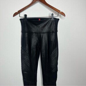 Spanx Women's Size Medium Metallic Faux Leather High Waist Black Moto Leggings