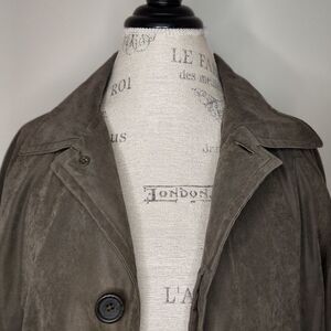 Classic Fitted olive Green Waterproof suede like Trenchcoat with side Pockets and Hidden Buttonup front, by popular Korean brand SPAO.