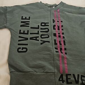 Spark Girl's Asymmetric Hem Long Sleeves Sweater Green/ Pink Size 8