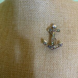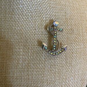 Sparkling aurora Borealis crystal anchor brooch paired with a dazzling bracelet. Perfect for adding a touch of glamour.