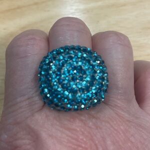 Elegant sparkling blue ring in a gift box. Perfect for special occasions. I believe the stones are rhinestones.