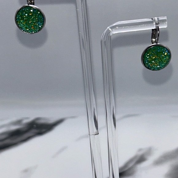 Enhance your style with these sparkling green drop earrings. Perfect for adding a pop of color to any outfit.