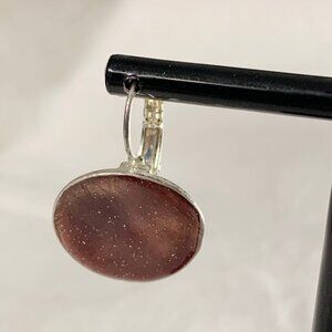 Sparkling Red Brown Goldstone Dangle Earrings Silver Tone Teardrop Lever Back