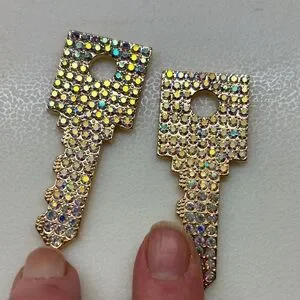 Dazzling key-shaped charms adorned with shimmering rhinestones. Ideal for crafting or as unique accessories.