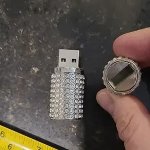 Dazzling rhinestone pendant with a silver tone, but also a USB memory stick!! You can sparkle at work and also keep all your folders close by. So smart and so fun.