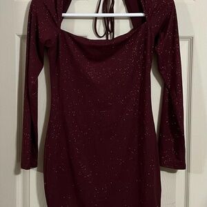 Sparkling Square Neck Dress in Burgundy