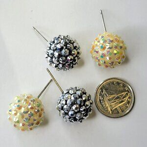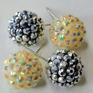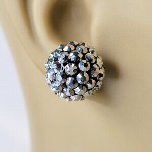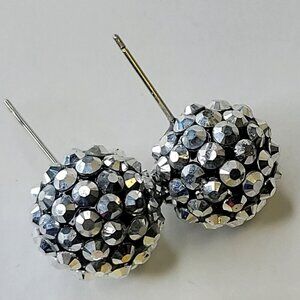 Sparkling Tiny Silver and Black Rhinestone Dome Round Earrings