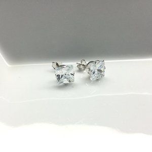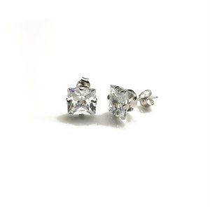 Sparkly Cubic Zirconia Square Stud Post Earrings