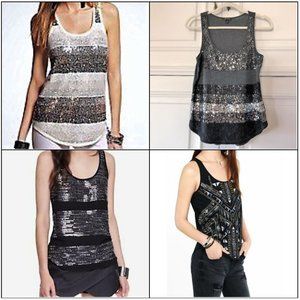 Sparkly Gray Sequin & Lace Tank Top by Express XS
