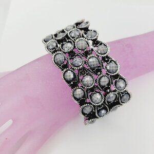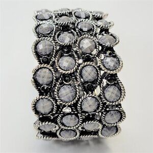 Sparkly Grey Jewel Stone Wide Cuff Bracelet Bangle