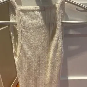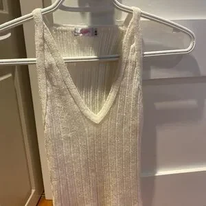 Elegant ivory ribbed knit top with V-neck. Ideal for any occasion.