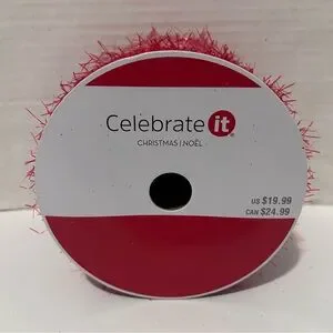 Bright red ribbon with a sparkly texture. Perfect for crafts and decorations.