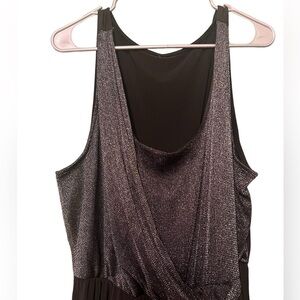 Brand unknown as tag was removed. Size approximately a size 18 but stretched to a 20 +. Beautiful dress. Worn and enjoyed. Only flaw is a few loose threads which can be easily taken care of. Cinched elastic waist add sexiness to the awesome female wearing it.