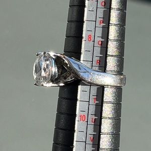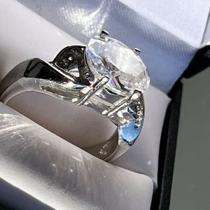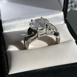 Sparkly cocktail ring, silver tone and cubic, size 9.