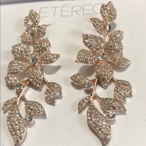 Great for a fancy night out. Worn twice only. 2.75 inches long. 1 inch wide at the widest point. Suitable to match with silvery or rose gold jewelry.