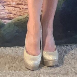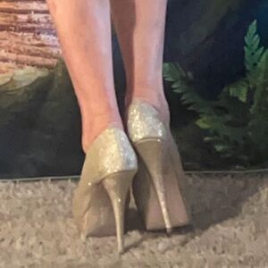 New sparkly gold high heels in size 8. Perfect condition. never worn.
