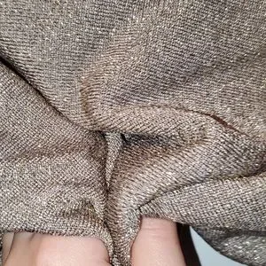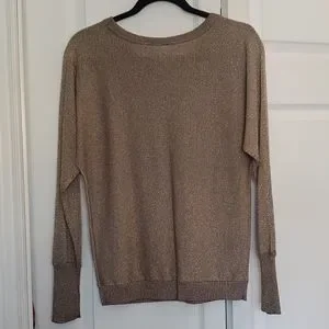 Perfectly gold sparkly blouse, dressy lightweight material with stretch to the fabric. Soft and not scratchy. Size small, 6-8.