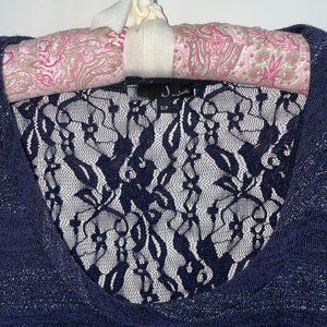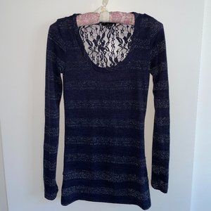 - Navy tunic style top with sparkles and a lace detail on back
