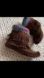 Brown moccasin with vibrant rag rug trim. Adds a bohemian flair. Tags says 7.5 but it fits like a snug 7.