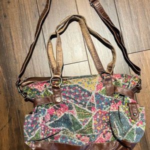 Sparrow True vintage-looking patchwork floral bag/purse. Two sets of straps allow it to be carried over the shoulder or crossbody.