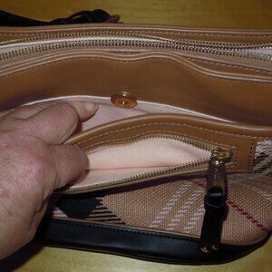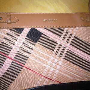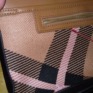 Spartina Pink & Black Plaid check Shoulder Hand Bag Purse Leather Linen NWT USA