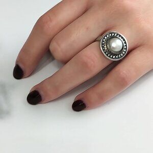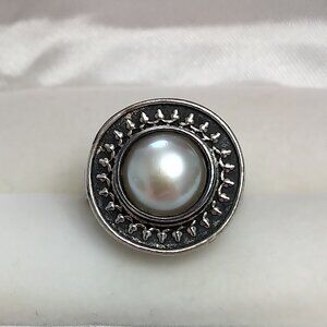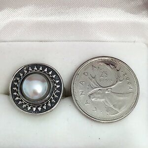 Spectacular Vintage Mabe Pearl and 925 Sterling Silver Lunar Ring